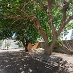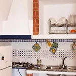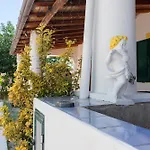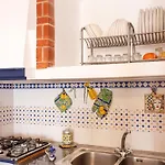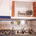 This Lipari accommodation is equipped with a refrigerator, an oven, and kitchenware for self-catering in an outdoor dining area.
